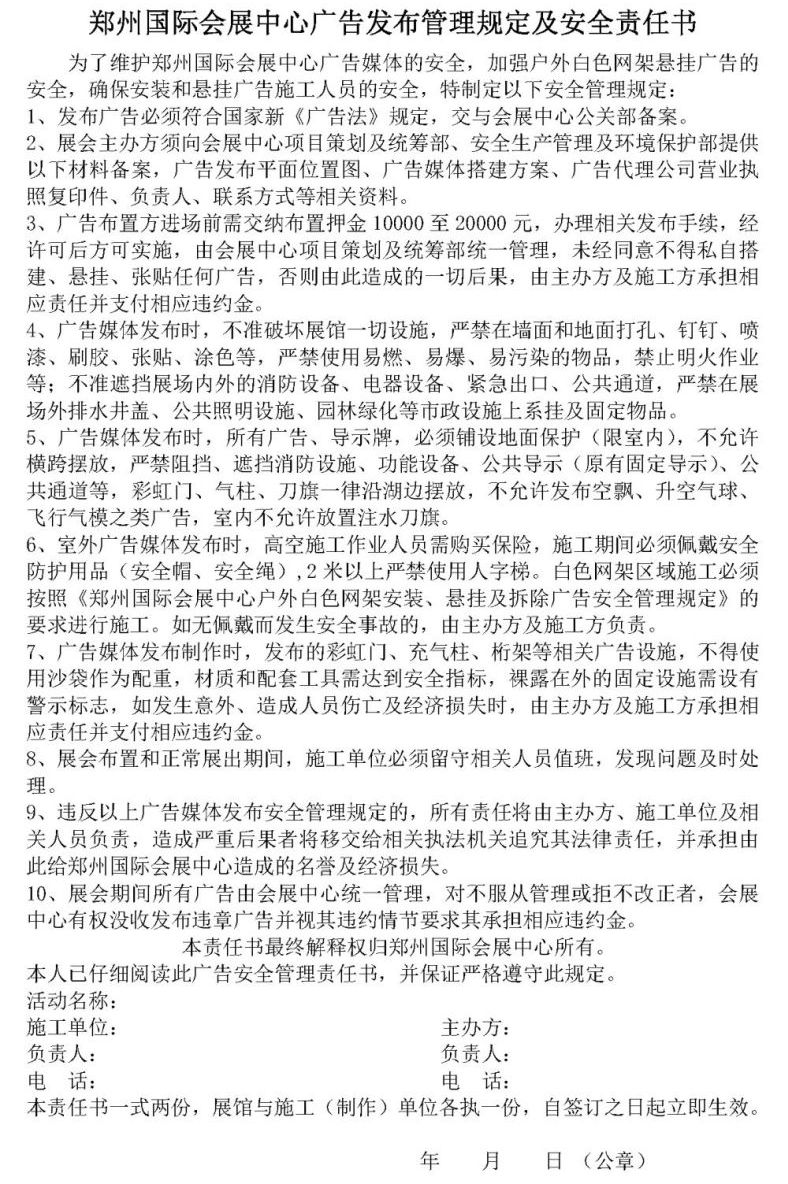 廣告發(fā)布管理規(guī)定及安全責(zé)任書