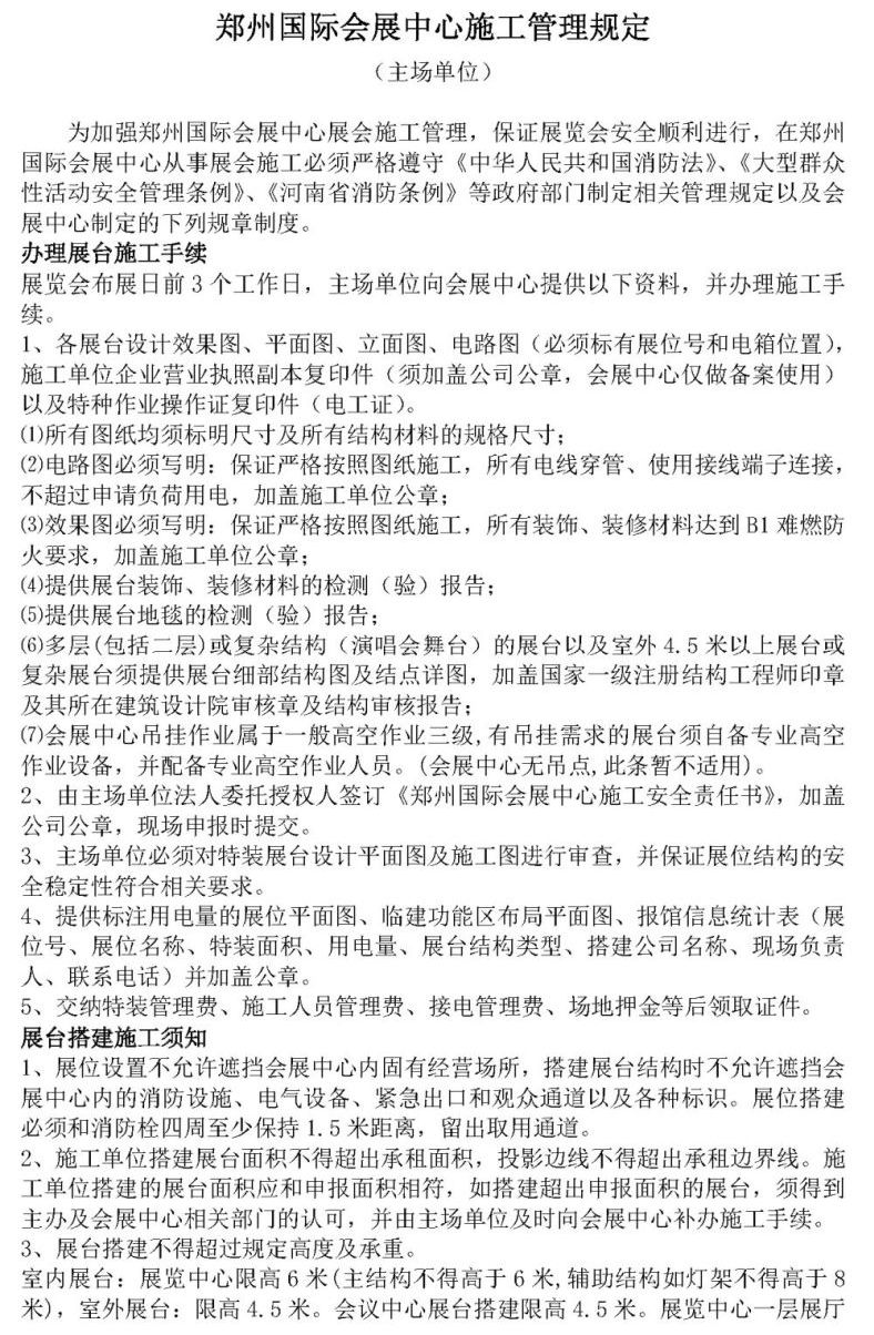 《鄭州國際會展中心施工管理規(guī)定(主場單位)》文檔下載