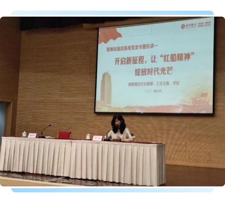 公司黨委邀請鄭州銀行助理、工會主席李紅同志為公司全體職工做了《開啟新征程,讓“紅船精神”綻放時代光芒》的主題演講。李主席以“紅船精神”為著力點(diǎn),以自身工作經(jīng)歷為出發(fā)點(diǎn),通過具體的事例讓大家了解鄭州銀行如何在把握時代脈搏、引領(lǐng)黨建工作中的擔(dān)當(dāng)進(jìn)取、創(chuàng)新發(fā)展。如何以自身作為表率詮釋著黨員先鋒模范帶頭作用。