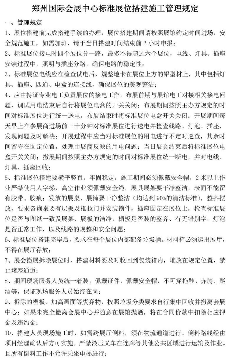 鄭州國(guó)際會(huì)展中心標(biāo)準(zhǔn)展位搭建施工管理規(guī)定