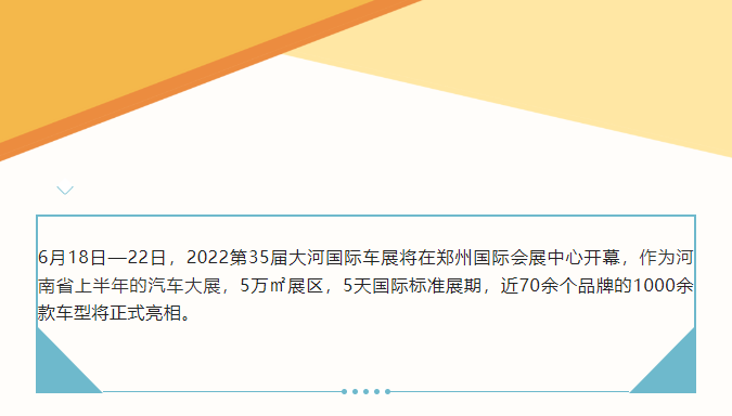 6月18日—22日,2022第35屆大河國際車展將在鄭州國際會展中心開幕,作為河南省上半年的汽車大展,5萬㎡展區(qū),5天國際標準展期,近70余個品牌的1000余款車型將正式亮相。