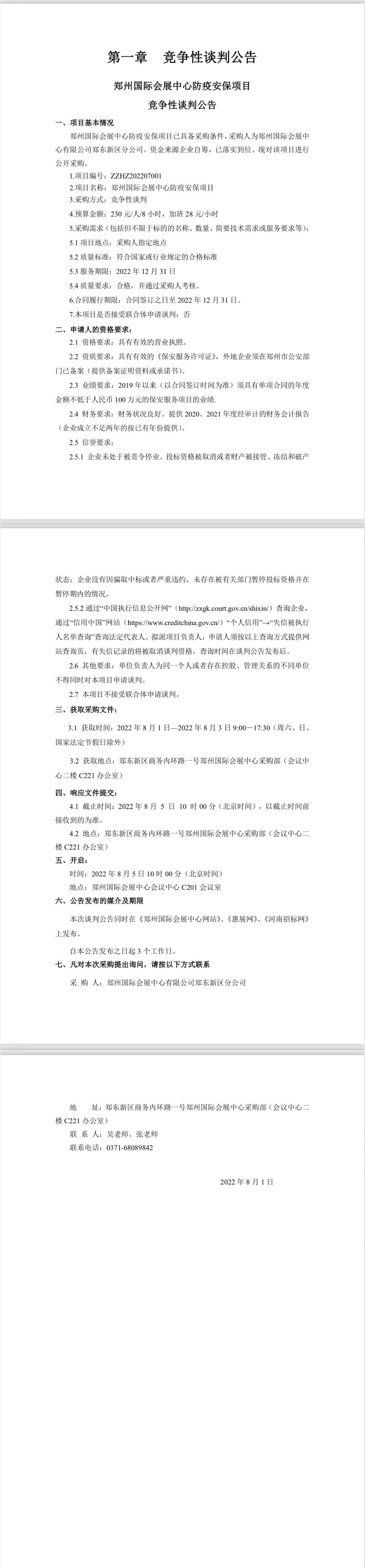 鄭州國際會展中心防疫安保項目 競爭性談判公告