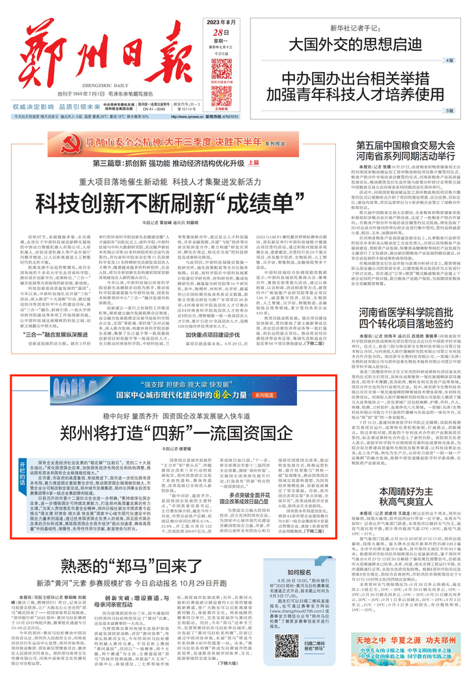 【“強(qiáng)支撐 擔(dān)使命 挑大梁 快發(fā)展” 國(guó)家中心城市現(xiàn)代化建設(shè)中的國(guó)企力量系列報(bào)道 】鄭州將打造“四新”一流國(guó)資國(guó)企