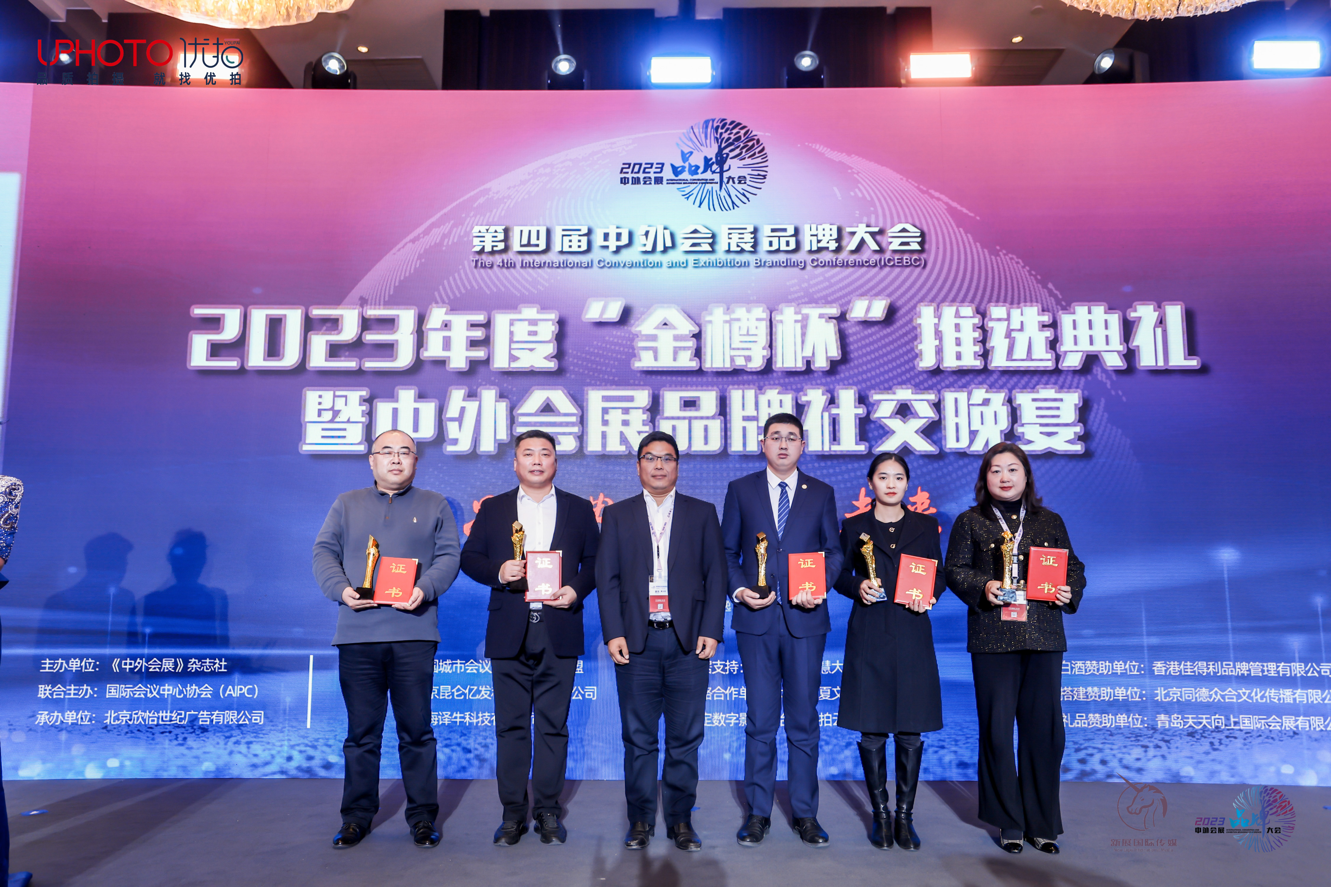 在會期舉辦的“2023年度中外會展‘金樽杯’宣傳推選”活動中,鄭州國際會展中心有限公司負責(zé)人王洪波榮獲“金樽杯—會展杰出人物”殊榮,鄭州國際會展中心榮獲“金樽杯—最佳品質(zhì)服務(wù)會展場館”殊榮。