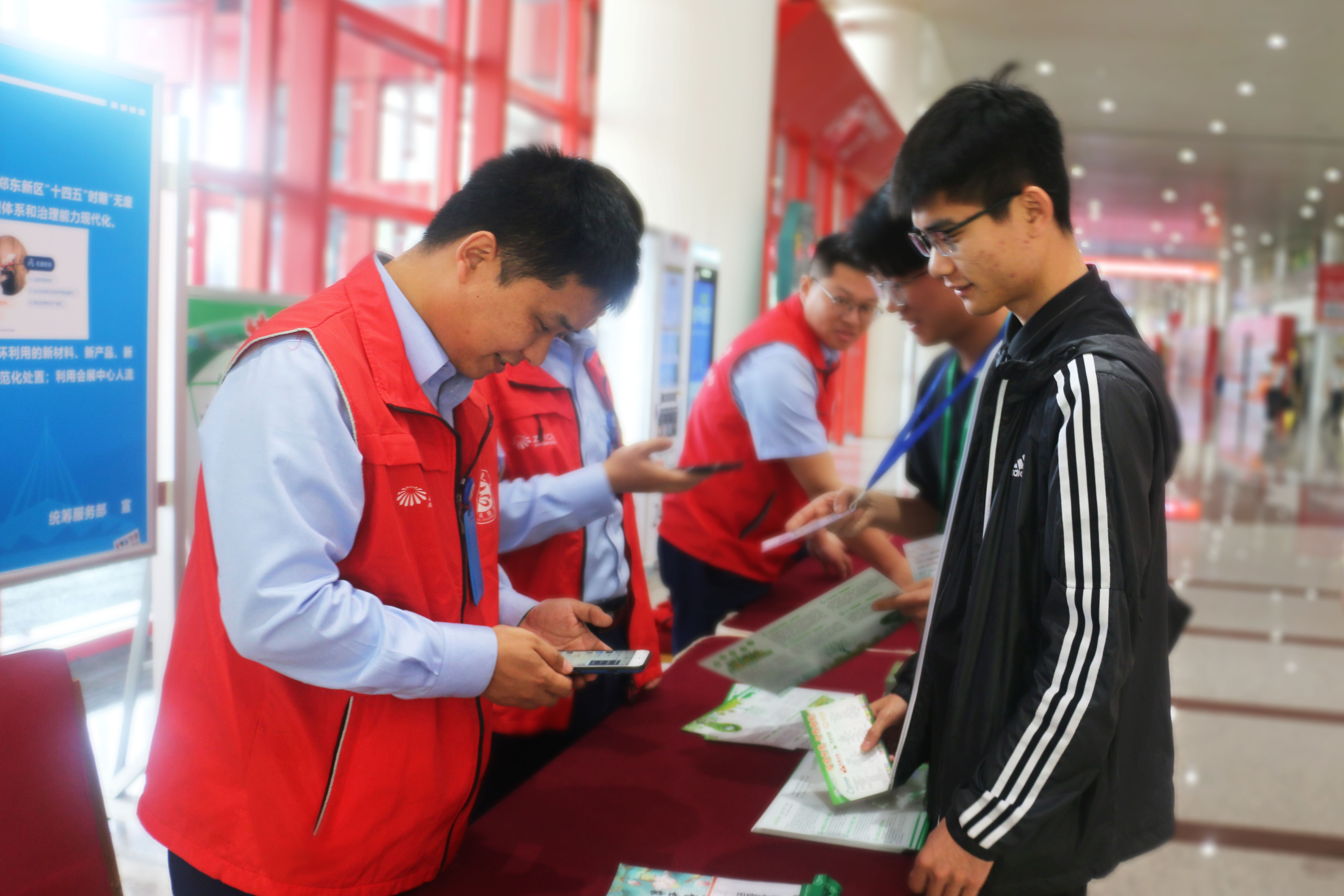 通過(guò)設(shè)立咨詢臺(tái)、發(fā)放宣傳單頁(yè)、播放大屏及條屏等形式,會(huì)展中心志愿者們向參會(huì)客商和市民普及垃圾分類和建設(shè)“無(wú)廢城市”相關(guān)知識(shí),提高了人們對(duì)創(chuàng)建綠色無(wú)廢商都,建設(shè)生態(tài)宜居鄭州的思想認(rèn)識(shí)。