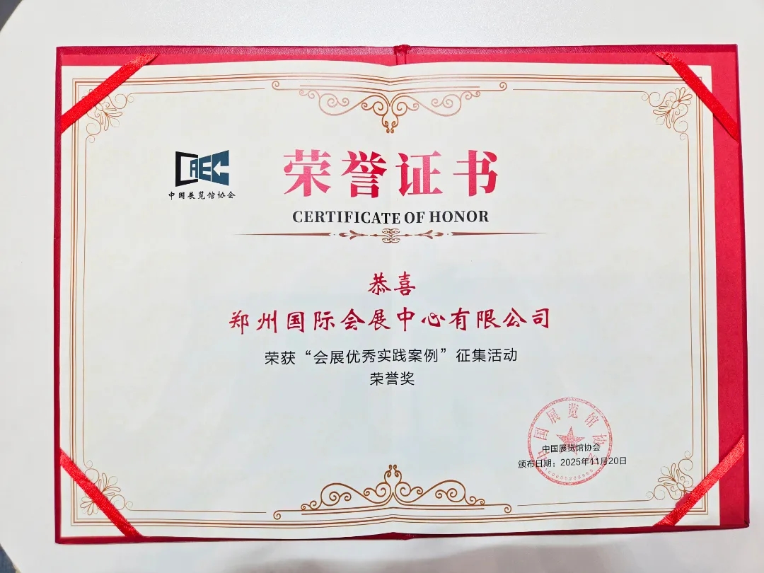 鄭州國際會展中心有限公司榮獲“會展優(yōu)秀實(shí)踐案例”征集活動榮譽(yù)獎